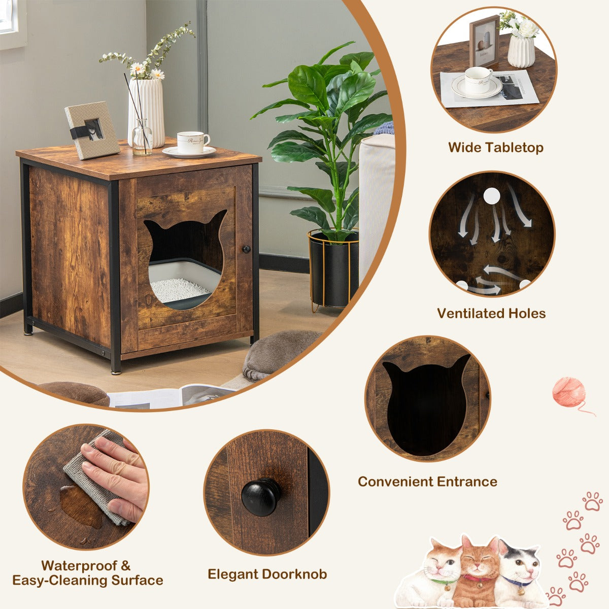 Can be used as a cat litter box enclosure, cat house, nightstand, end table, and more