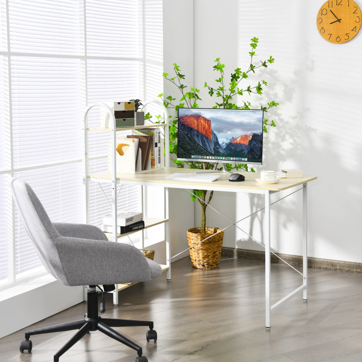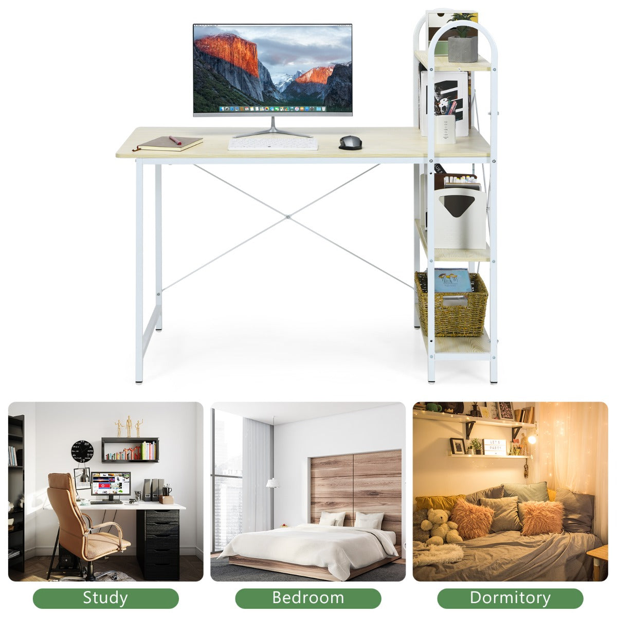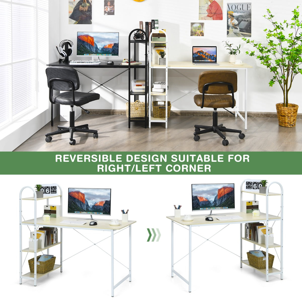 Great Storage Helper: Apart from a wide desktop, the writing desk is also equipped with a 4-tier storage shelf. You can sort and place items on the shelf in a customizable manner. Besides, the storage shelf is within easy reach, so you can conveniently get what you need at busy work.