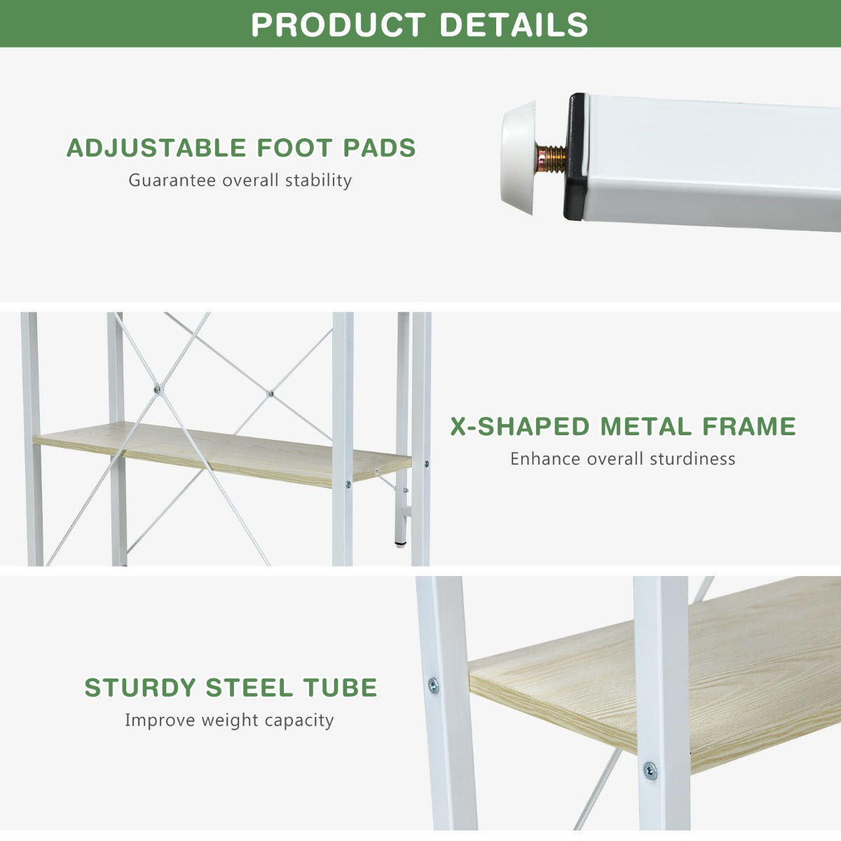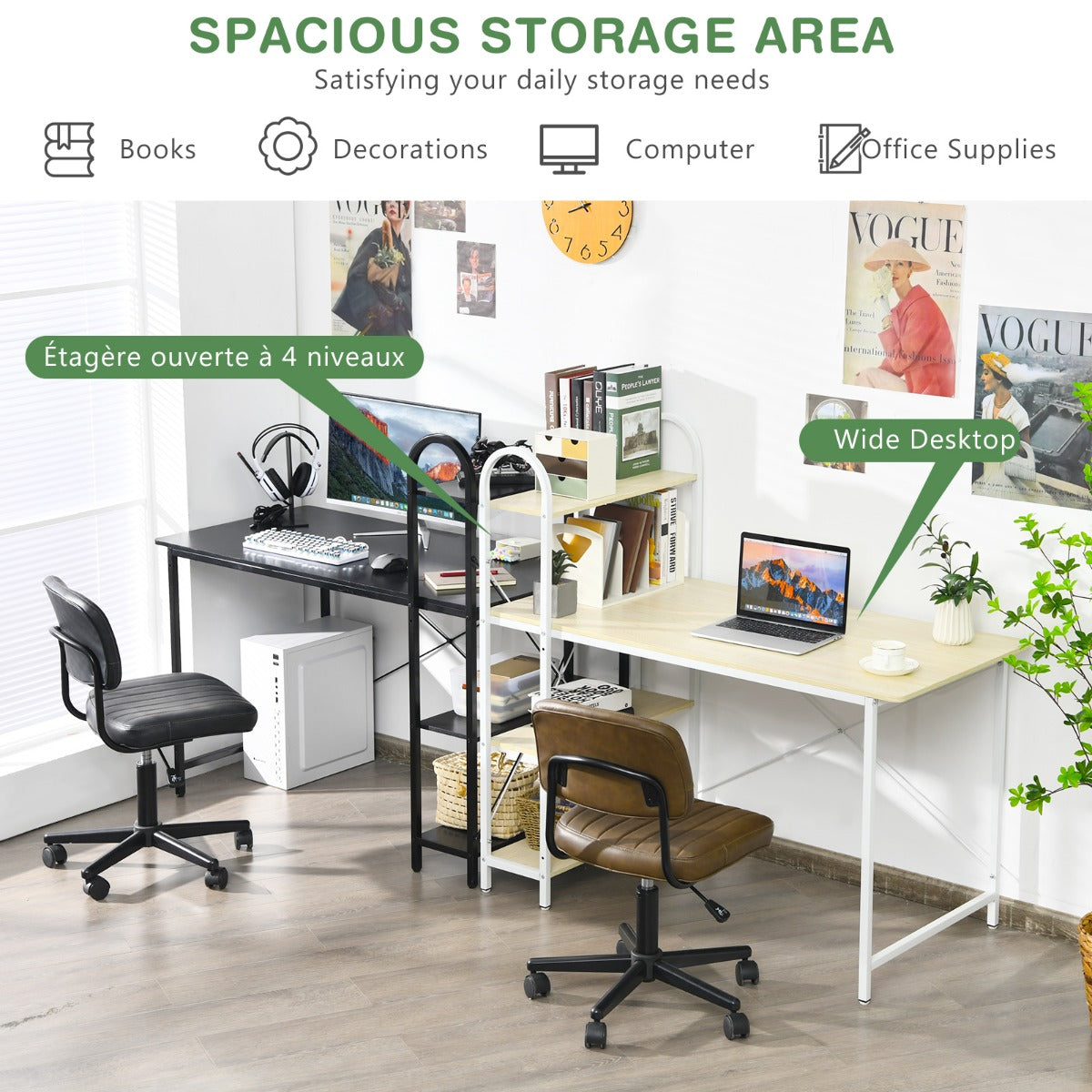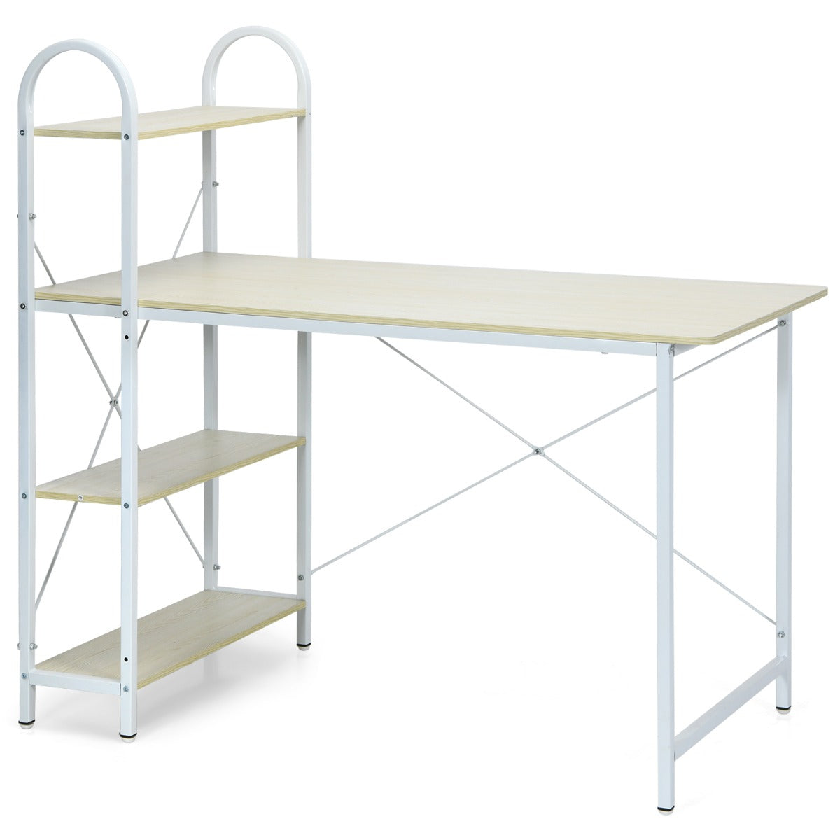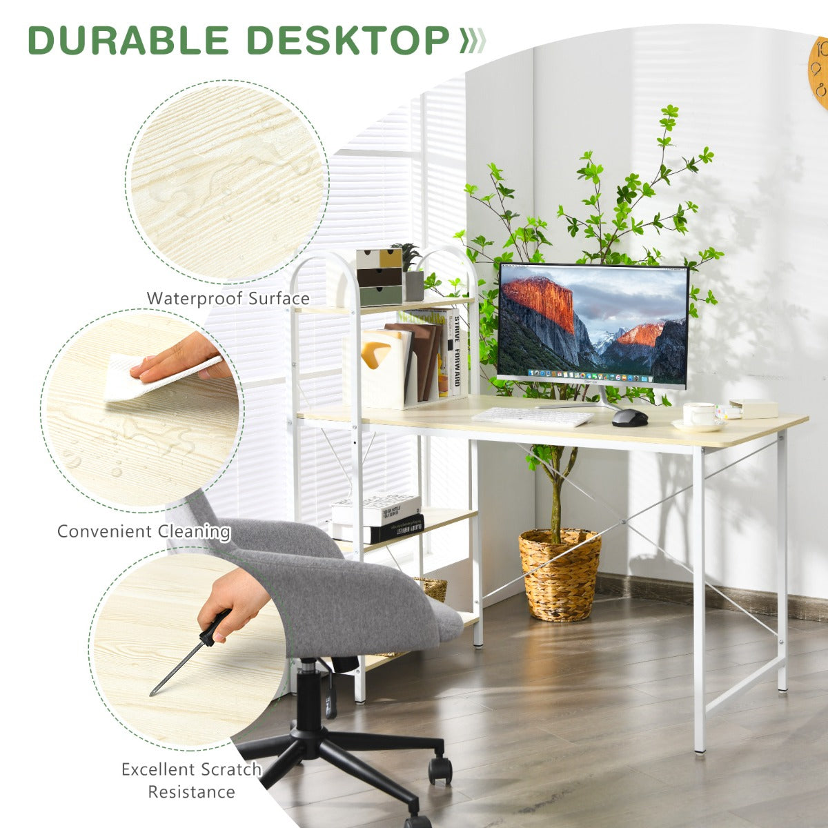 Great Storage Helper: Apart from a wide desktop, the writing desk is also equipped with a 4-tier storage shelf. You can sort and place items on the shelf in a customizable manner. Besides, the storage shelf is within easy reach, so you can conveniently get what you need at busy work.