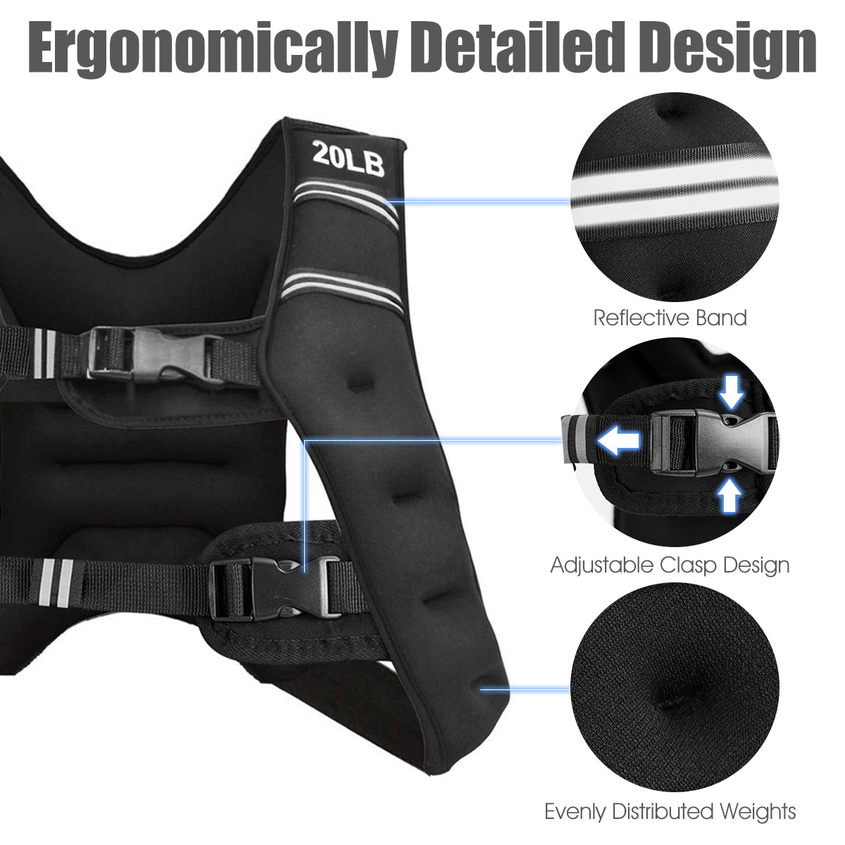 Adjustable Buckles & Reflective Straps: The weighted vest has two buckles on the front to keep it from falling off during workouts. In addition, these two adjustable buttons allow you to adjust according to your body shape. The shoulder straps and back of the workout vest have reflective strips to ensure your safety even at night.
