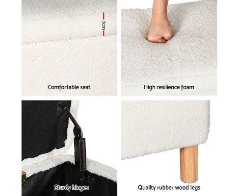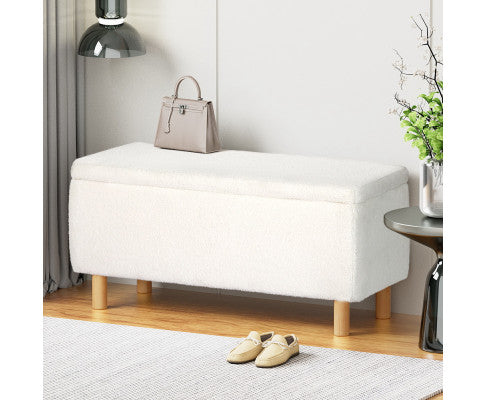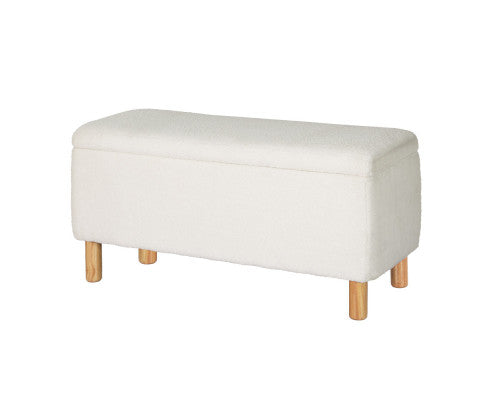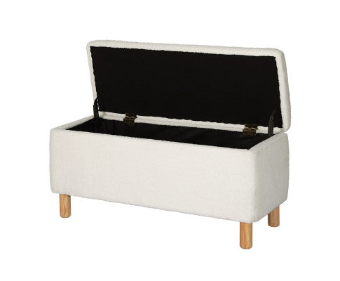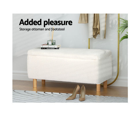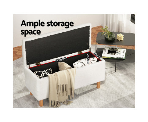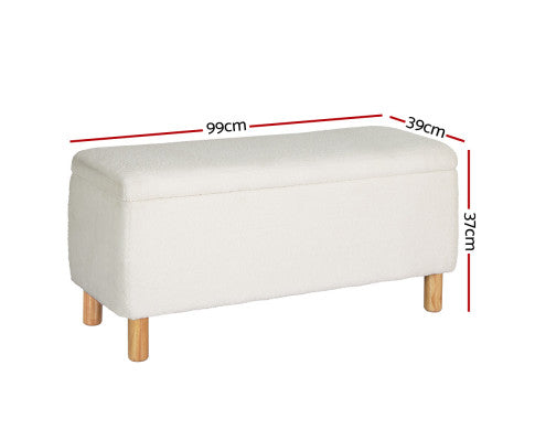 Storage Ottoman Blanket Box 99cm Teddy Fabric White