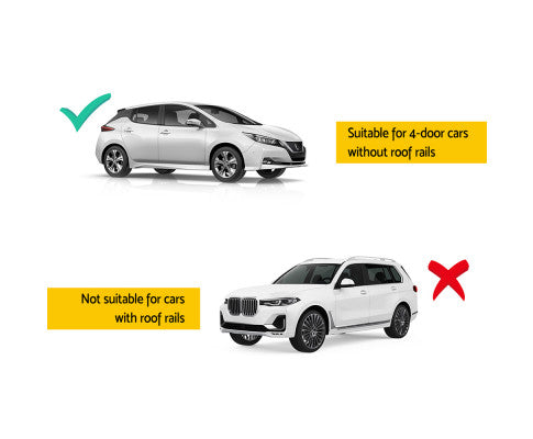 Suitable for 4-door cars and SUVs with bare roofs (no roof rails)