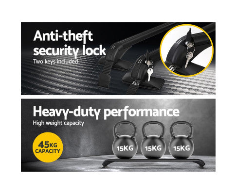 Featuring a universal fitting design, the rack is compatible with most vehicles on the market with bare roofs (without roof rails). Installing it on your car is simple. Just affix the included clamps (of which there are two sets to fit your car) to your car door frame. No drilling or cutting required! Also, it is worth mentioning its sturdy construction, made from quality aluminium alloy which offers reliable and long-lasting performance. The elliptical shape minimises air resistance and anti-scratch rubber pads on the base prevent slippage and damage to your car paint. Also coming with a specialised anti-theft security locking system and two independent keys included, this car roof rack is ideal for long road trips and off-road adventure.